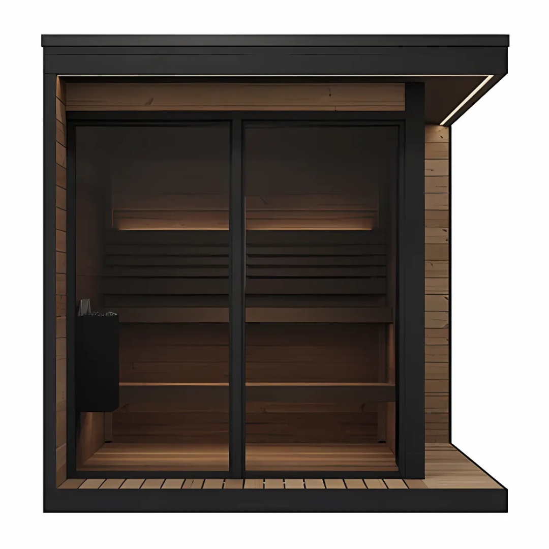 The Model GL6 is engineered for any weather conditions. In addition to the thick and durable thermo-spruce walls and tempered glass front to contain temperature, this sauna is equipped with roofing and metal flashing for superior water management and a dry interior.