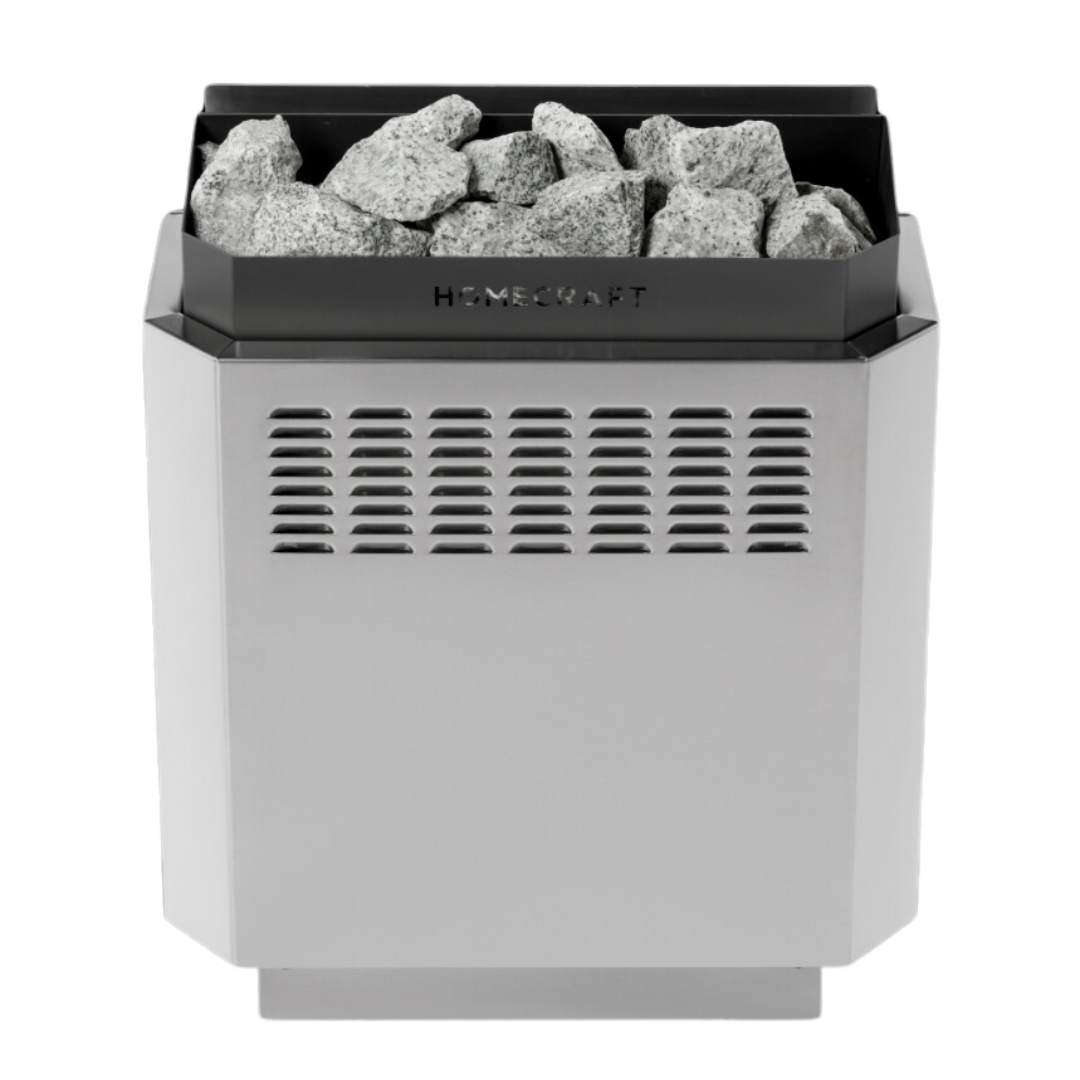 Homecraft C & H-series Sauna Heaters are designed with a shallow but sufficient rock capacity for the perfect balance of functionality (Quick heat up time) while giving the sauna user the ability to pour water onto the rocks adding steam and humidity into the room for a delightful experience.