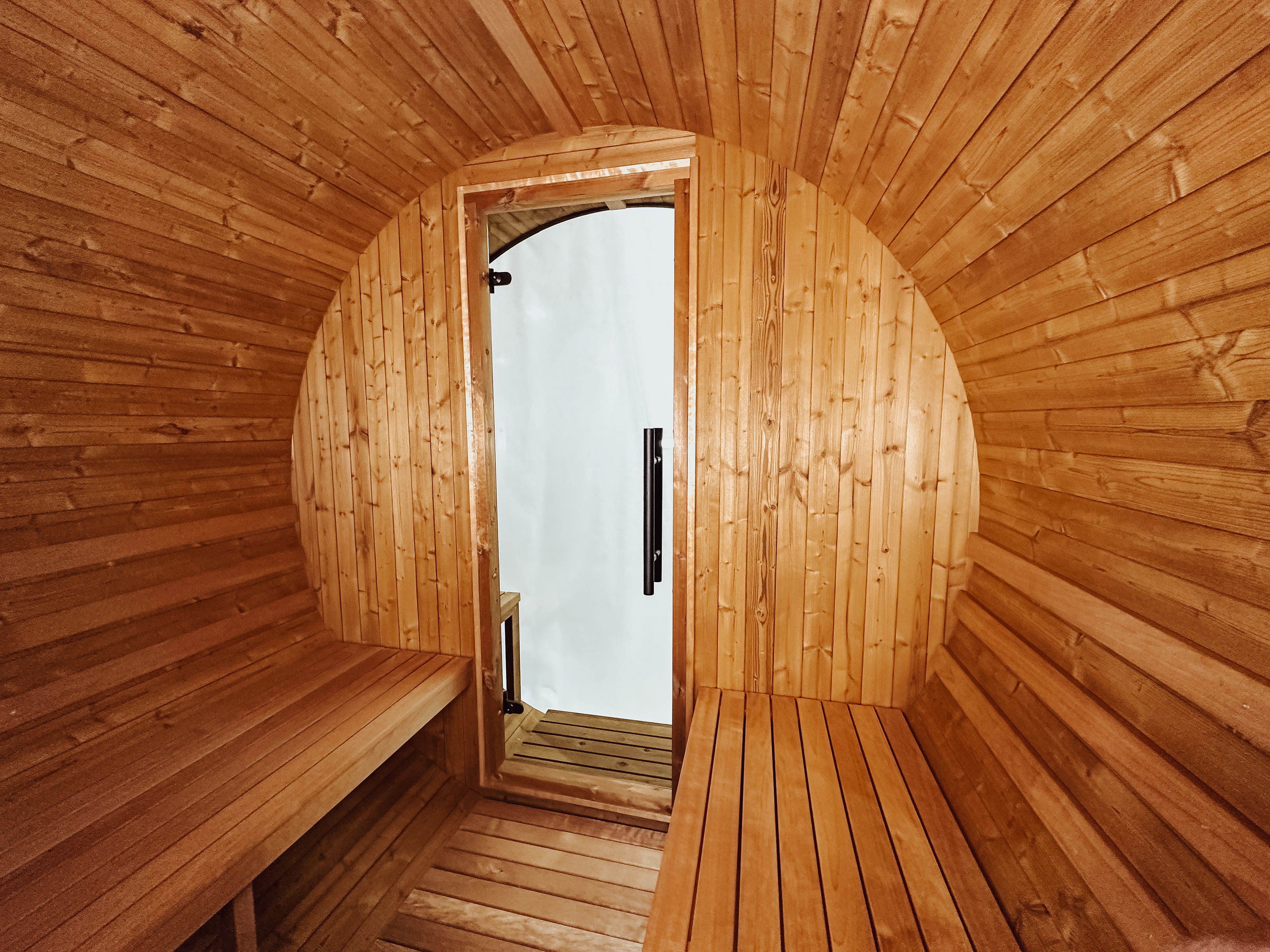 What makes Thermory Barrel Saunas unique? Ours are the only thermally modified barrel saunas in North America. So you get the beauty of real wood, naturally enhanced with only heat and steam for unequaled durability and stability. And it never shrinks—even in changing weather conditions. It’s the most ideally suited wood for your sauna experience.