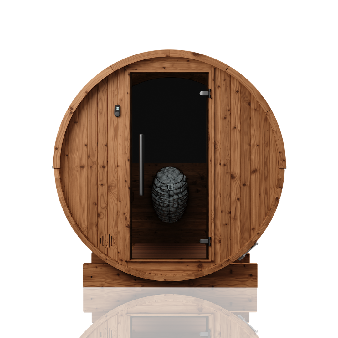 Why leave home for date night when you can enjoy the privacy of a cozy barrel sauna? Our 50 Series “Cozy” barrels are perfect for two people, with some models large enough for four. They all come with a Wi-Fi enabled HUUM heater, a rain jacket for all-weather protection, and an optional extra-wide window.