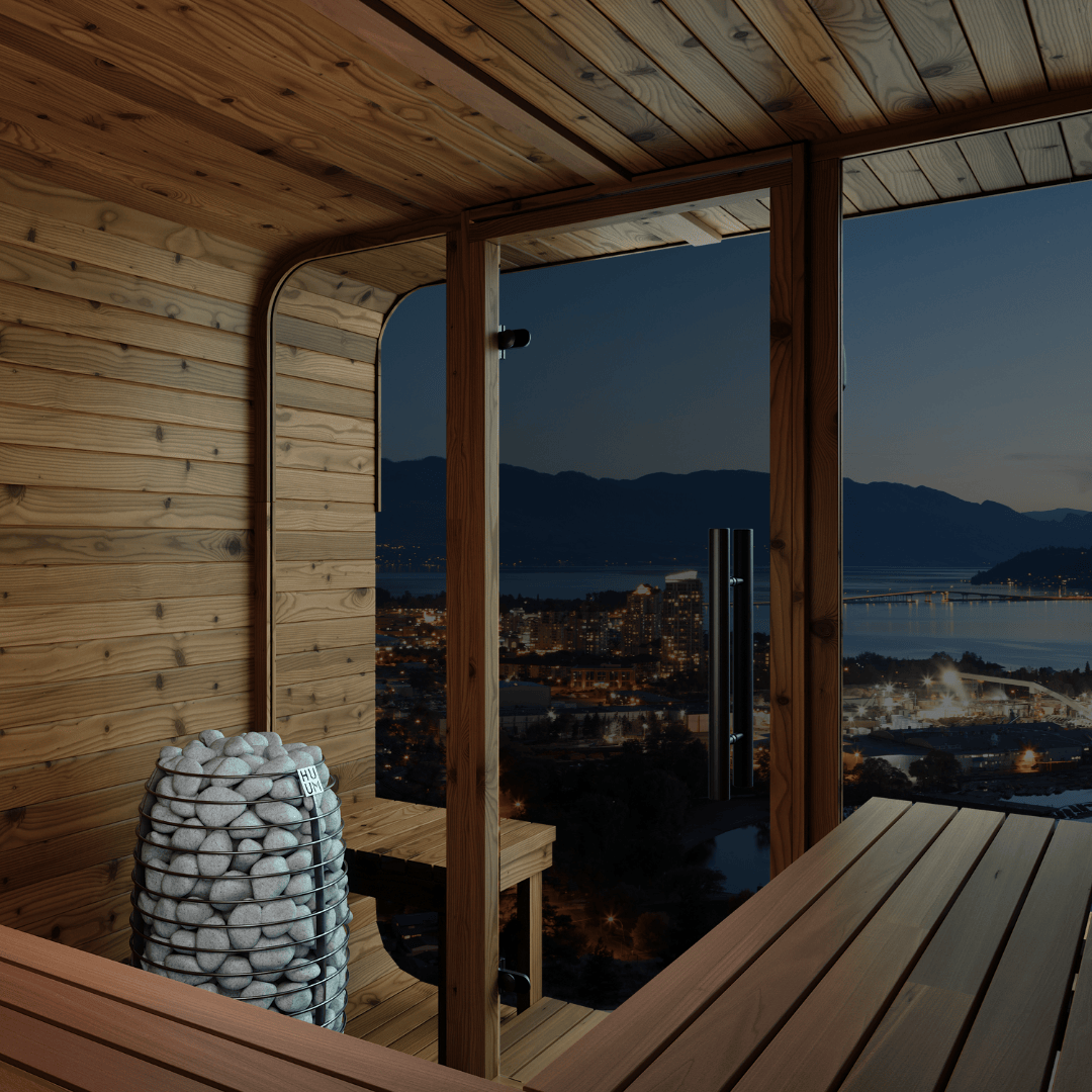 With a minimalist design and high stone capacity, HUUM heaters give you long-lasting heat and steam. And your sauna’s curved interior ensures even heat distribution, so nobody fights for the “good seat.”