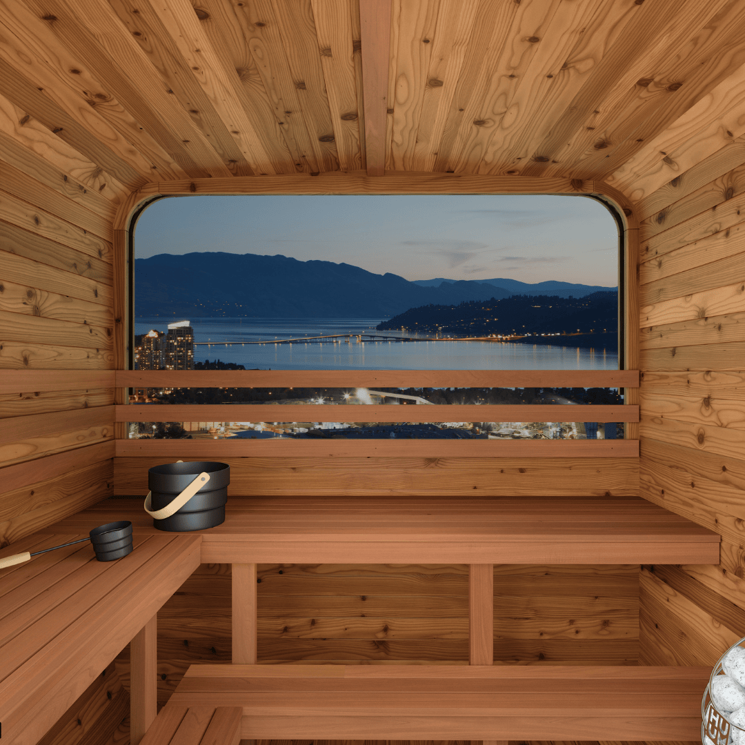With a minimalist design and high stone capacity, HUUM heaters give you long-lasting heat and steam. And your sauna’s curved interior ensures even heat distribution, so nobody fights for the “good seat.”